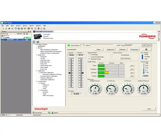 Flowserve software includes diagnostic solutions for control valves, Hart® communication for positioners and device configuration tools.
